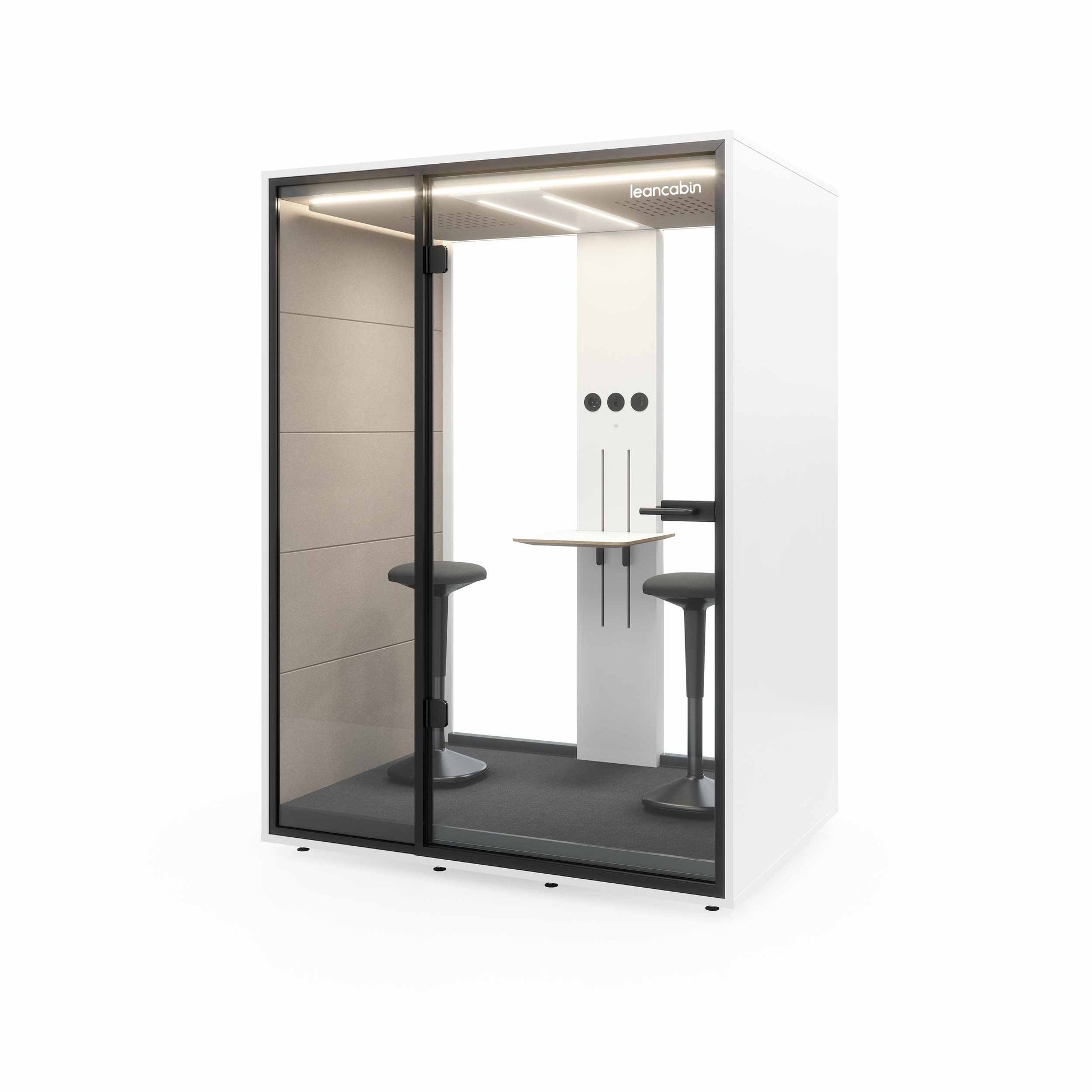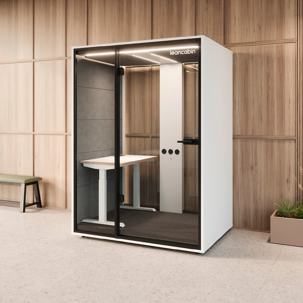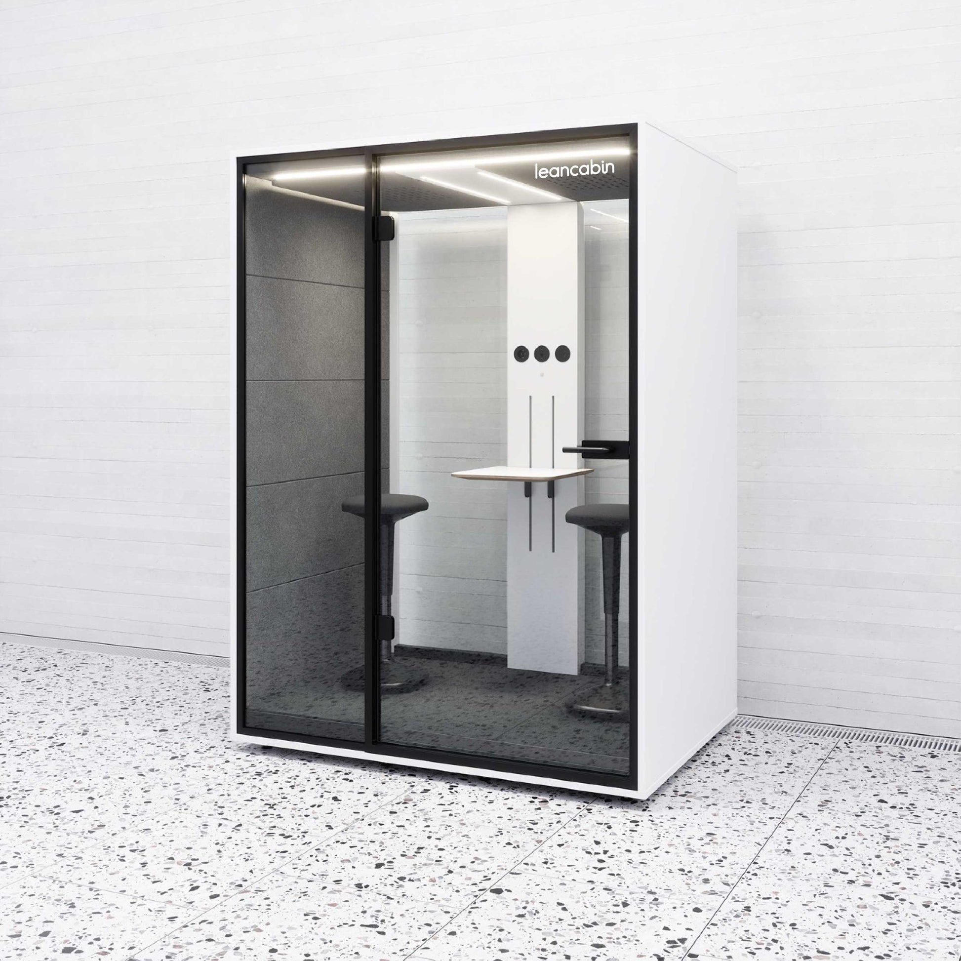 Leancabin Duo es una cabina acústica profesional diseñada para entornos industriales, oficinas abiertas, coworkings y espacios híbridos. Su diseño flexible permite utilizarla como puesto de trabajo individual ergonómico para uso prolongado o como sala de reunión / cabina para dos personas, sin necesidad de obras.