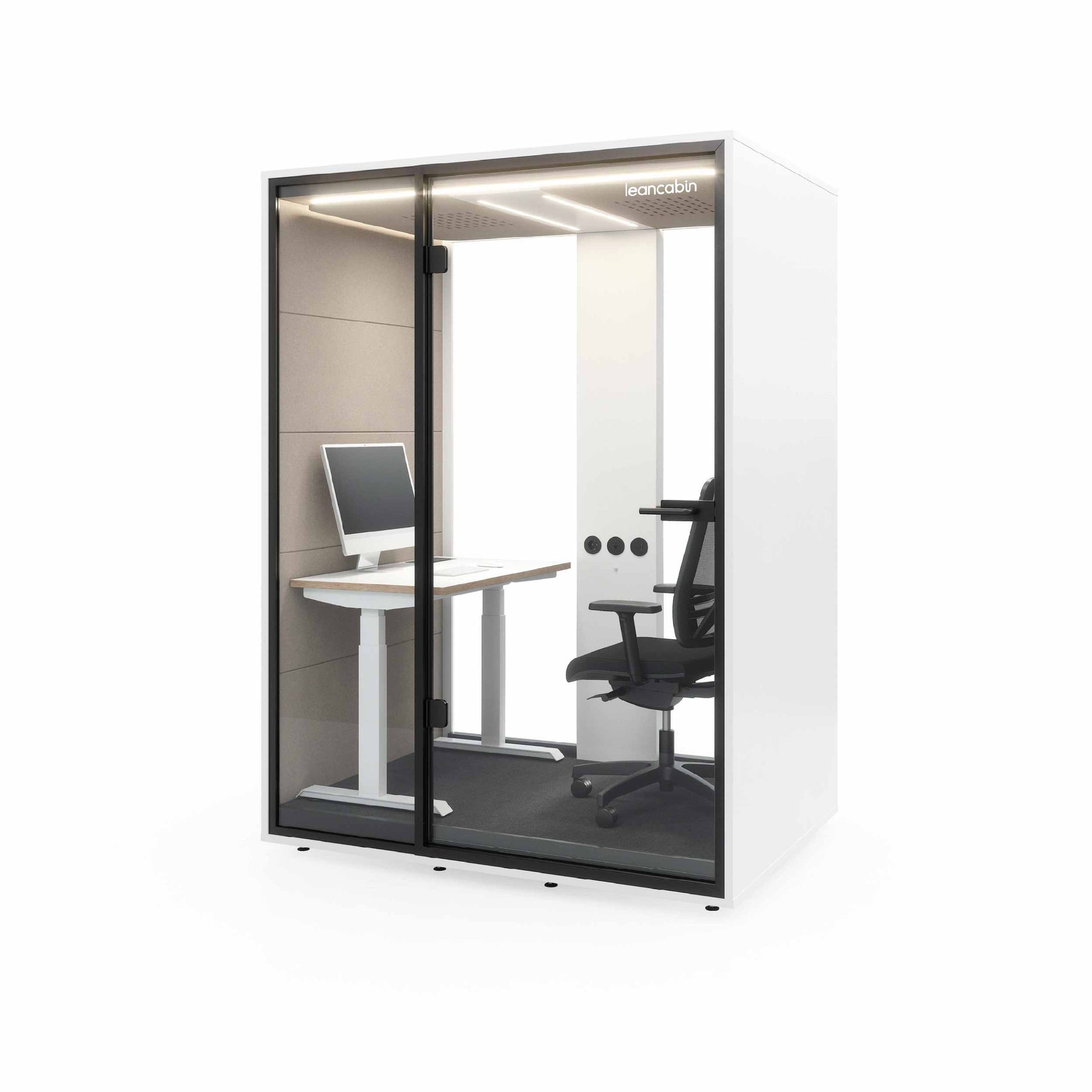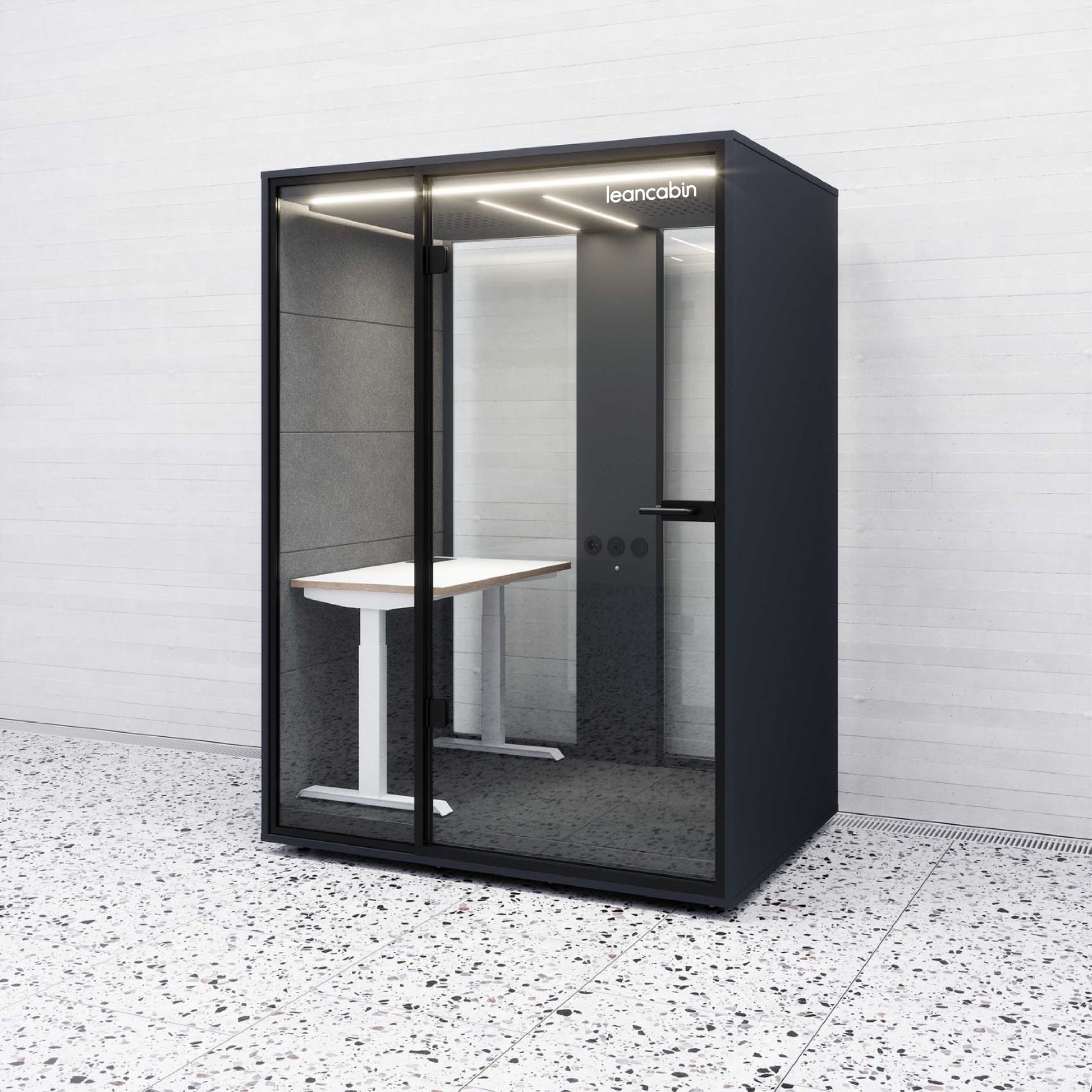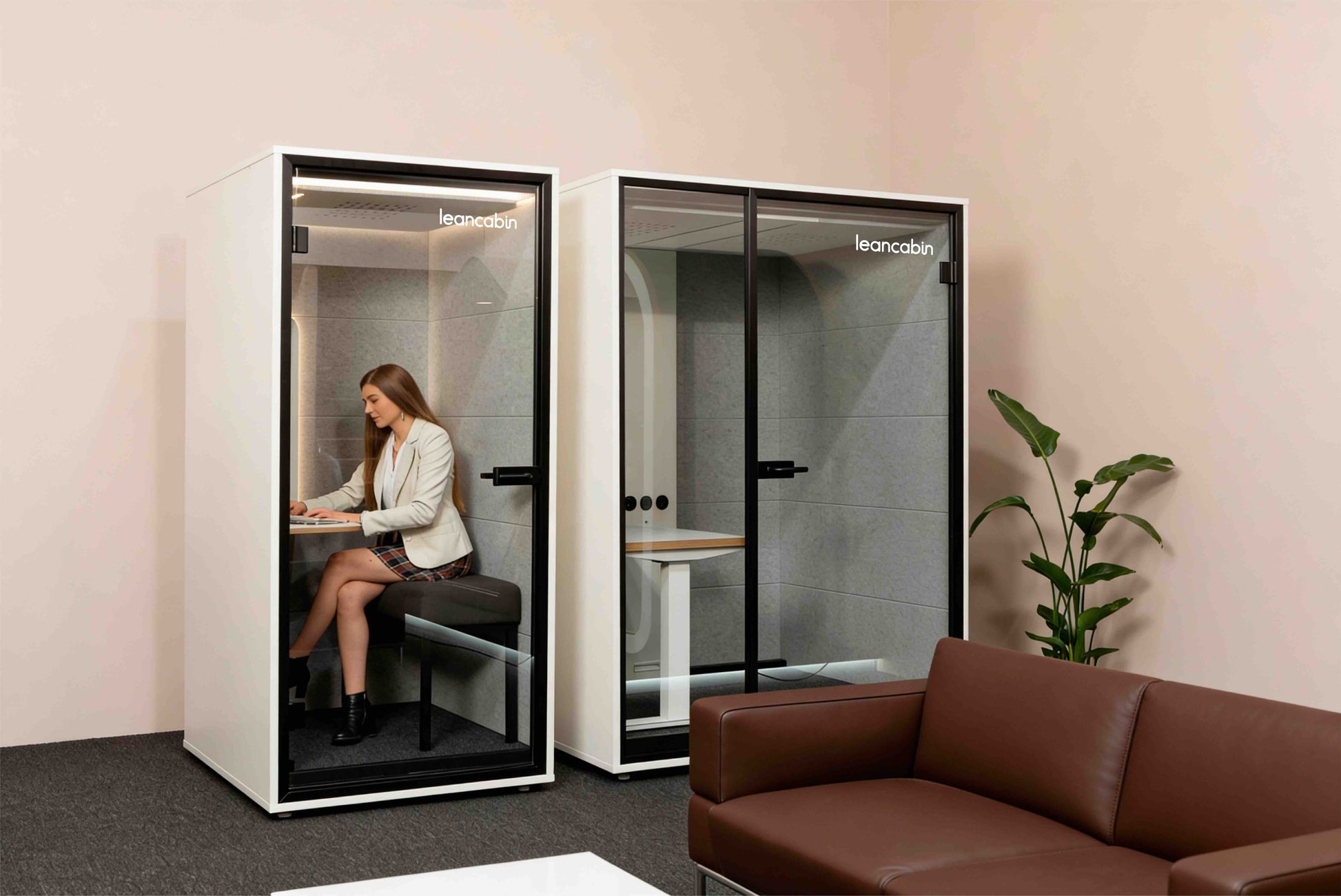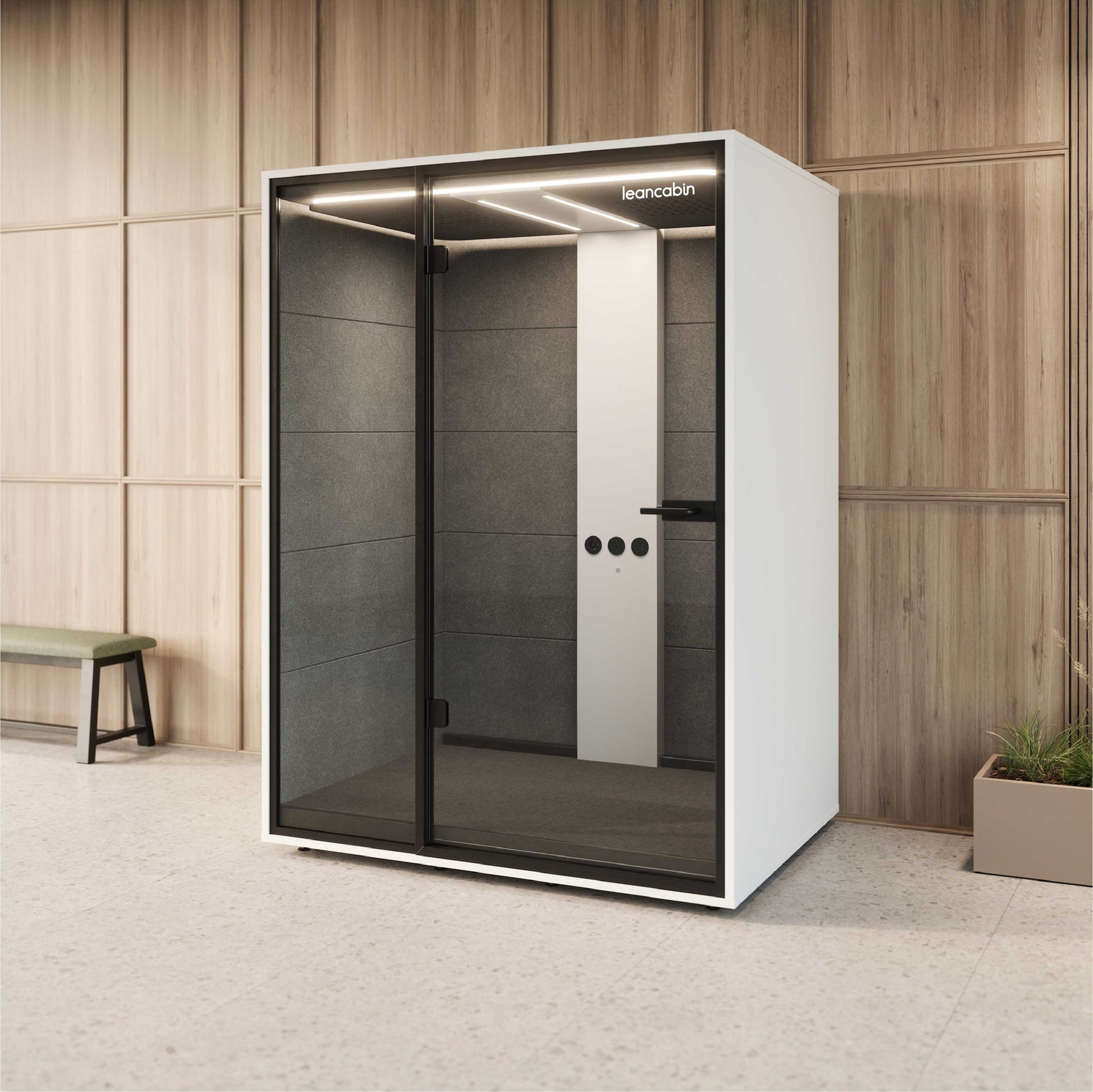 Leancabin Duo es una cabina acústica profesional diseñada para entornos industriales, oficinas abiertas, coworkings y espacios híbridos. Su diseño flexible permite utilizarla como puesto de trabajo individual ergonómico para uso prolongado o como sala de reunión / cabina para dos personas, sin necesidad de obras.